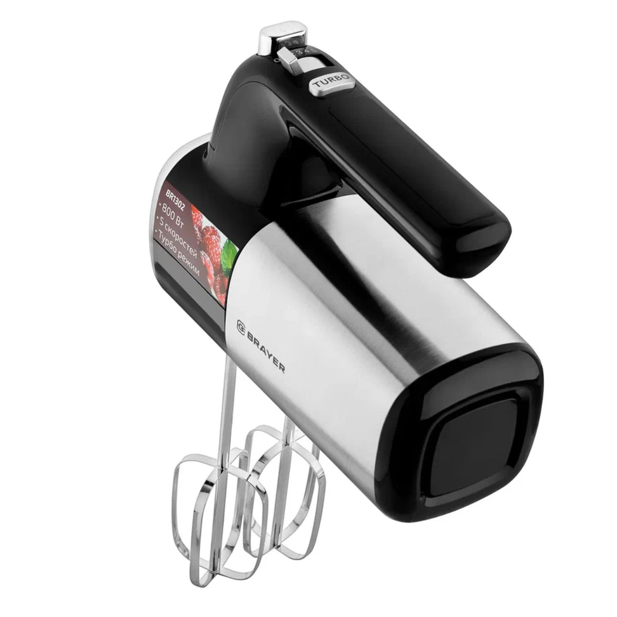 Миксер BR1302 800Вт, 5 скоростей, турбо,насад. венчики, насад. для взбивания  BRAYER