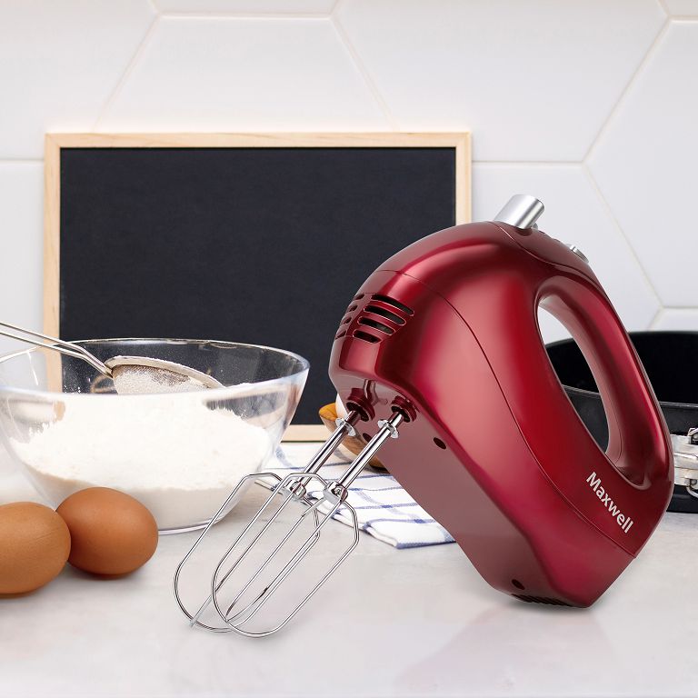 Миксер MAXWELL MW-1357 R с максимальной мощностью 300 Вт позволяет взбивать яичные белки, готовить муссы, соусы, кремы, а также идеально вымешивать тесто. Прибор имеет 5 скоростных режимов и режим TURBO, который помогает быстро справиться даже с густой массой. В комплект входят 2 венчика для взбивания и 2 насадки для теста из хромированной стали. Менять насадки очень просто — с помощью легкого нажатия на специальную кнопку.