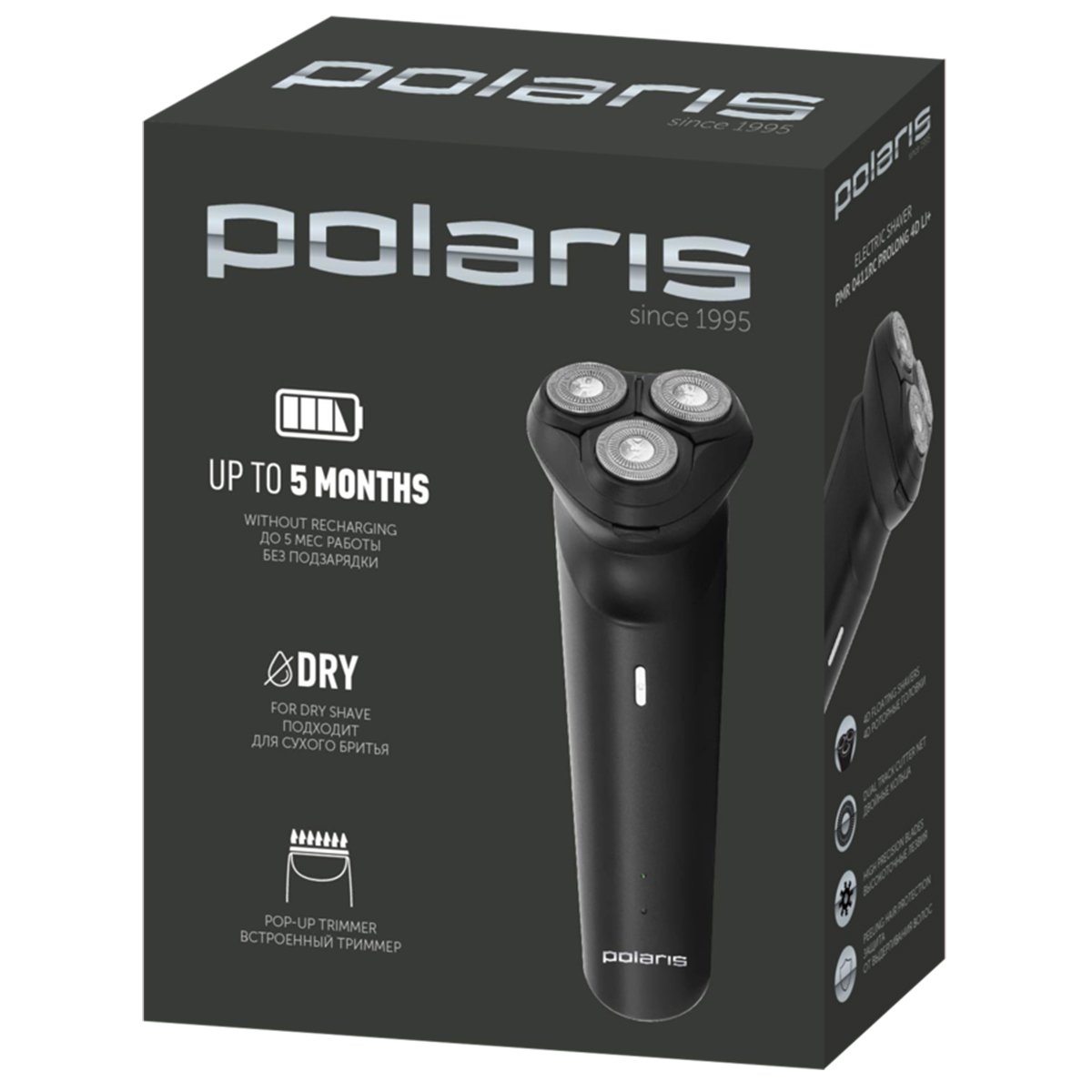 Бритва PMR 0411 RC PROLong 4D Li+ (аккум./сеть LI-ION, 3 головки) черный Polaris