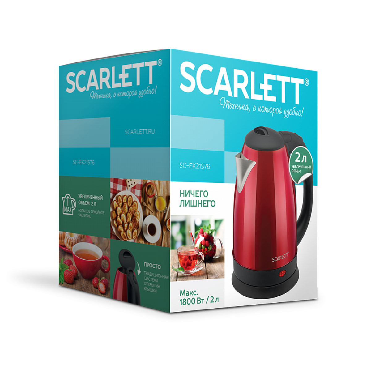 Эл.чайник SC-EK21S76 2л нерж. 1500-1800Вт, красный