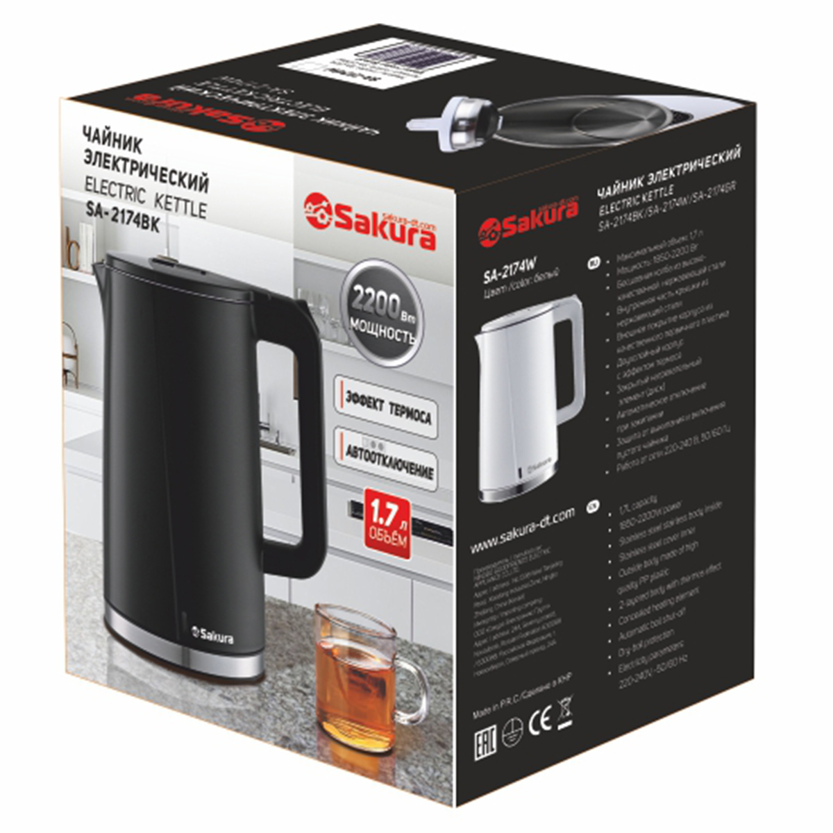 Эл.чайник SA-2174BK 1,7л черный нерж/пластик