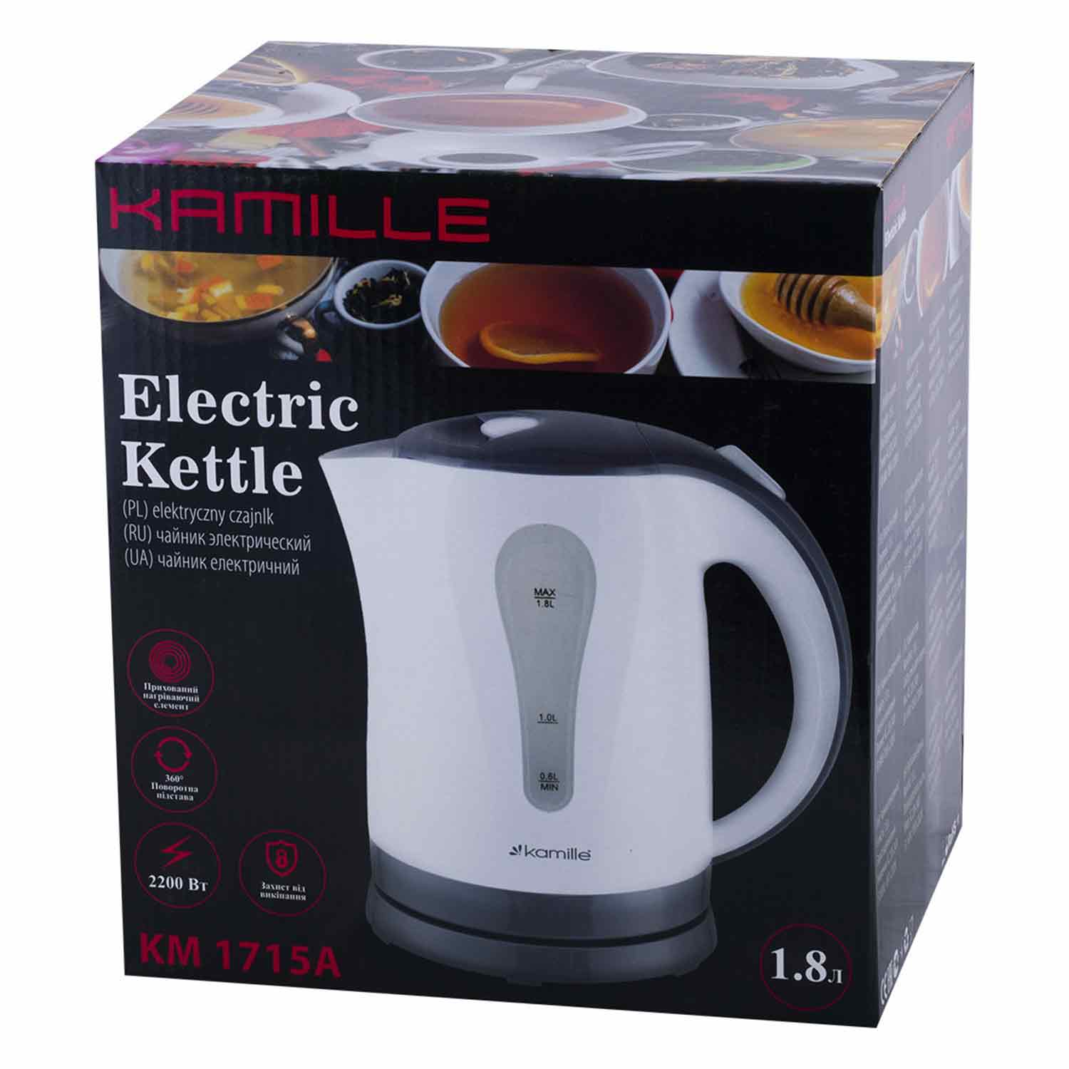 -Эл.чайник 1,8л пластик белый с серым 1715А
