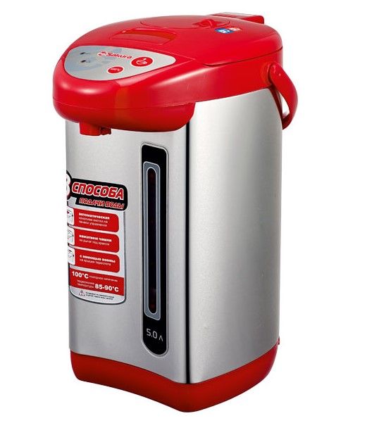 Термопот эл. SAKURA SA-336RS, 5л,750Вт, метал/красн