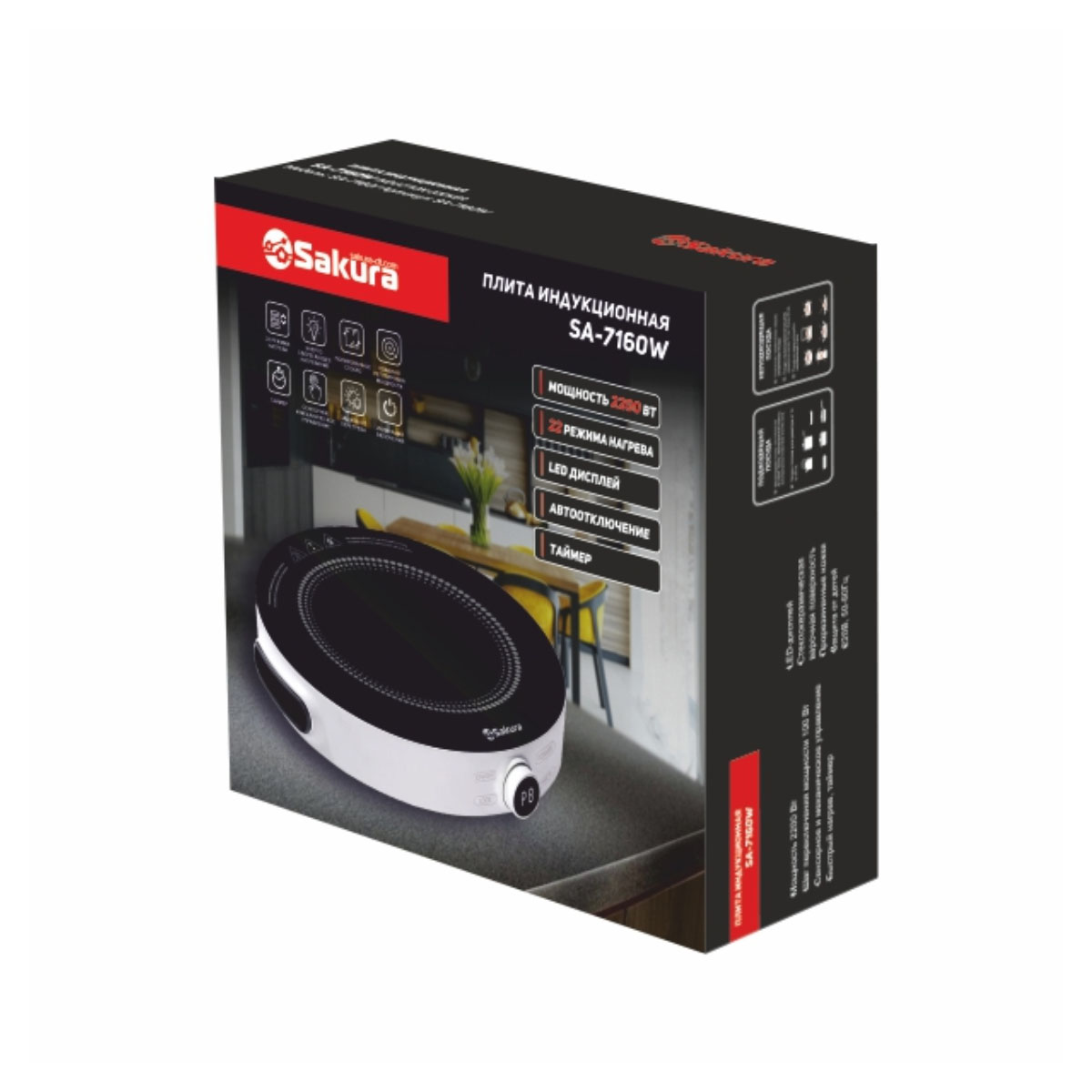 Плитка эл. SAKURA SA-7160W, 1 конфор.,индукция,стеклокерамика, белый