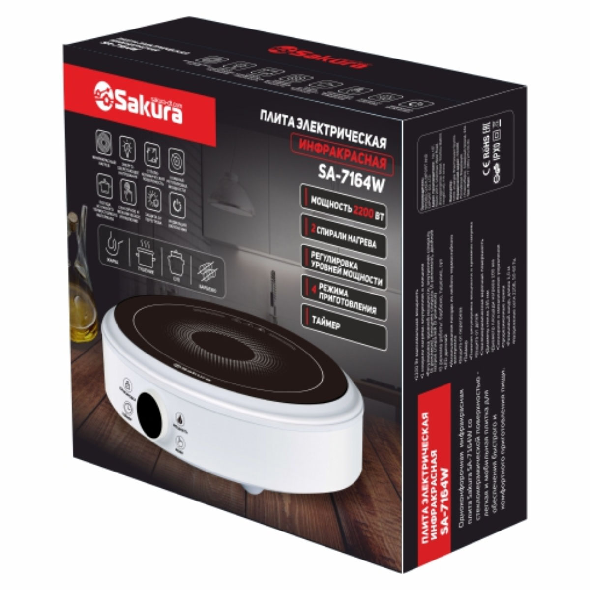 Плитка настол 1 конф SA-7164W стеклокерамика,инфракр