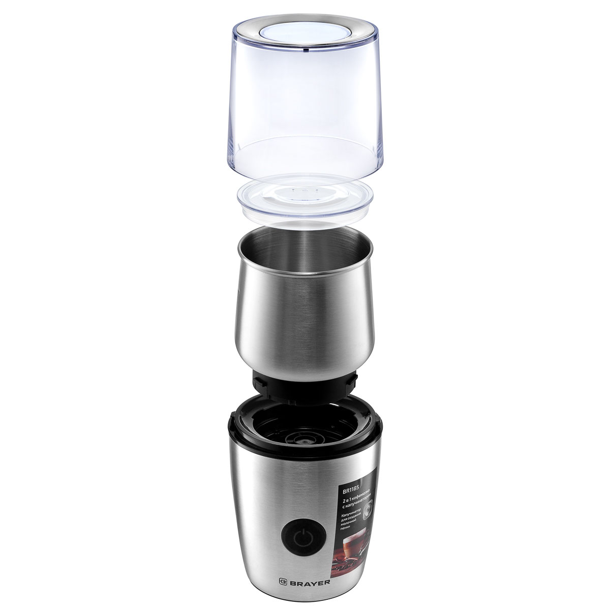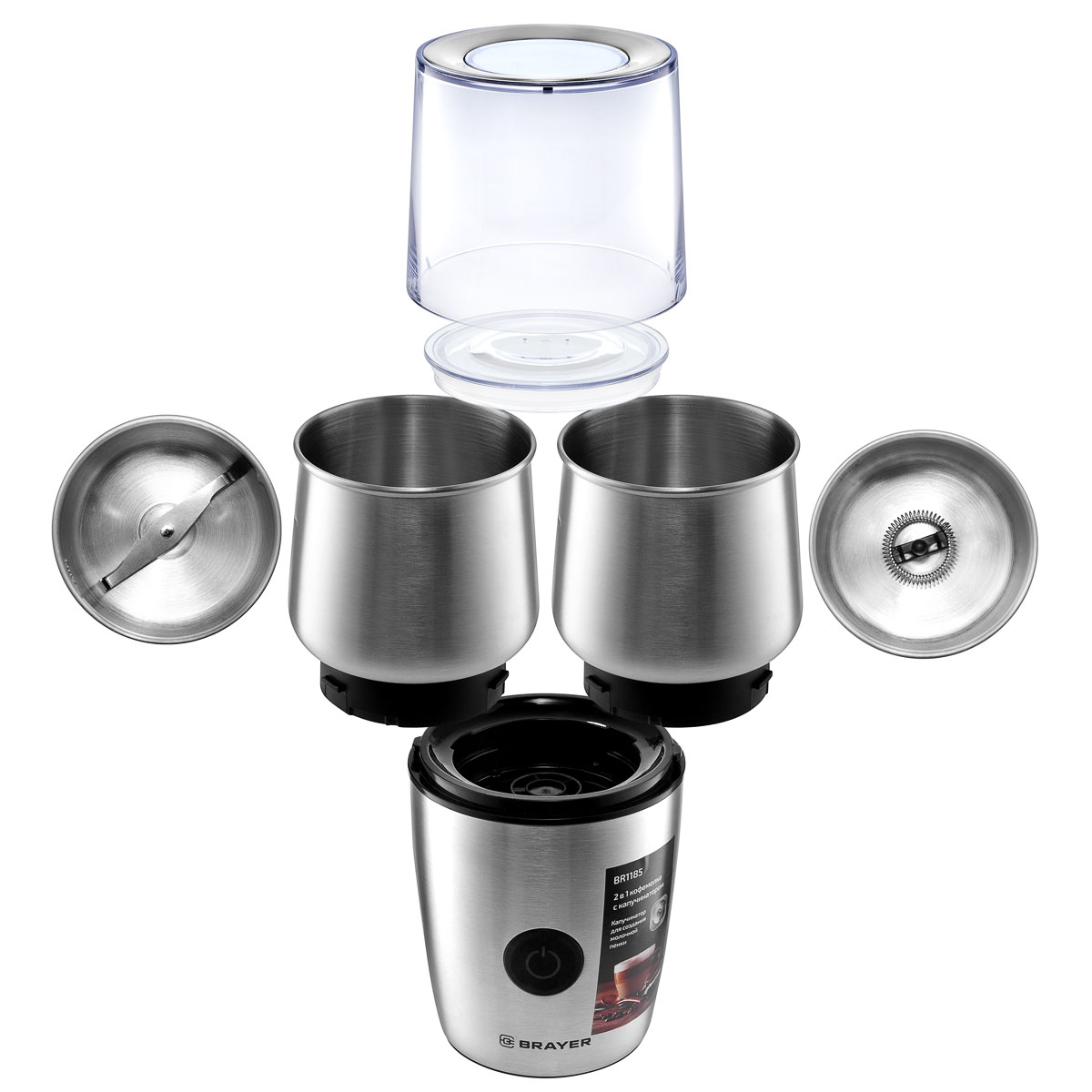 -Эл.кофемолка BR1185 с капучинатором 100 г 200Вт BRAYER