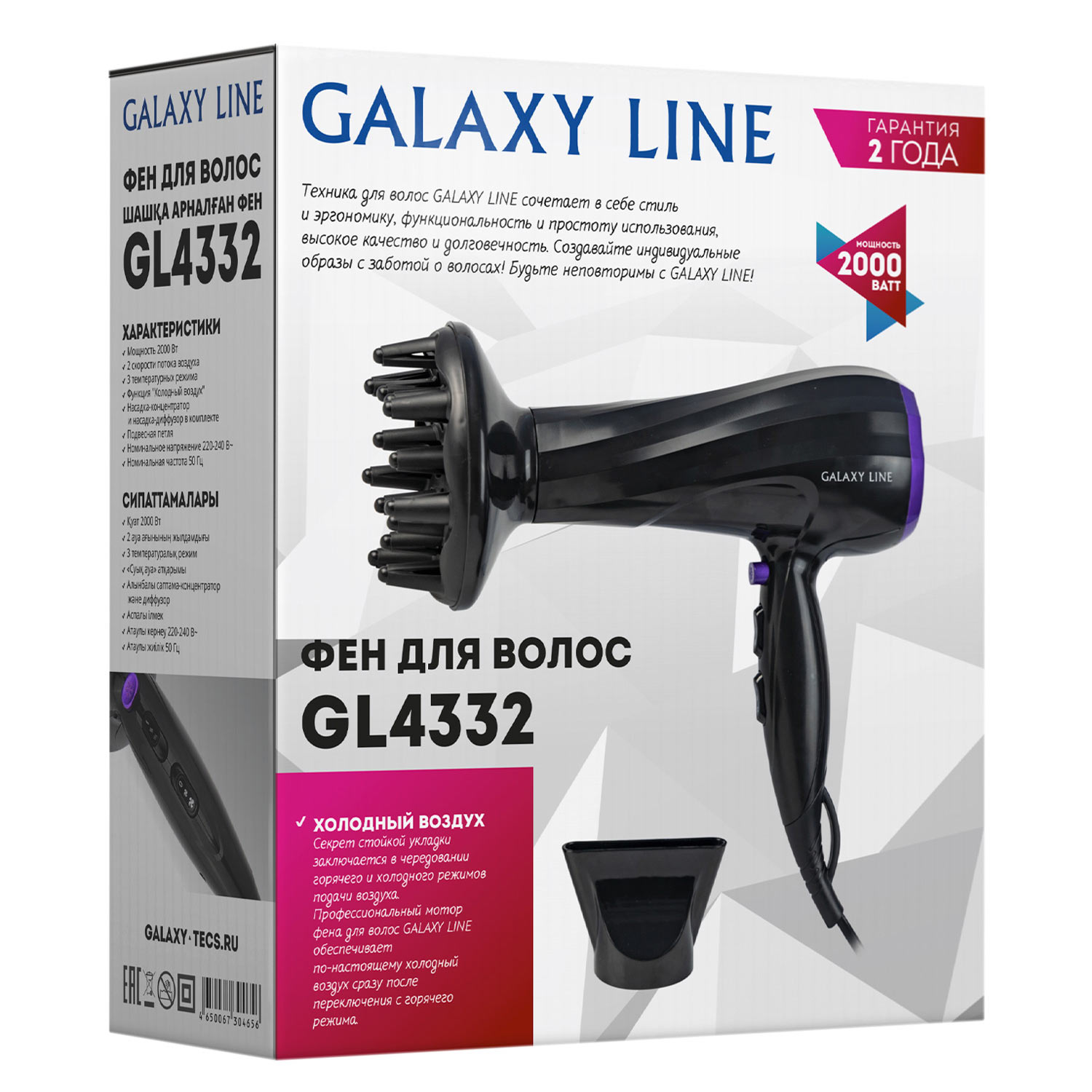 -Фен Galaxy LINE GL4332 2000Вт, 2 скорости, 3 режима, черный