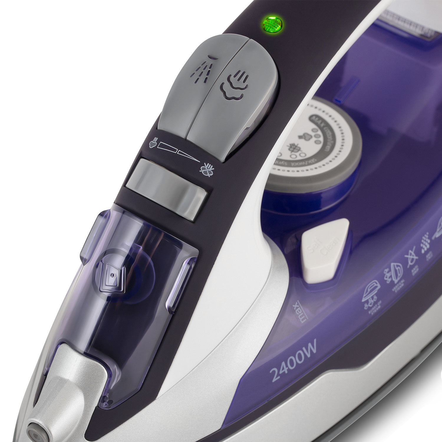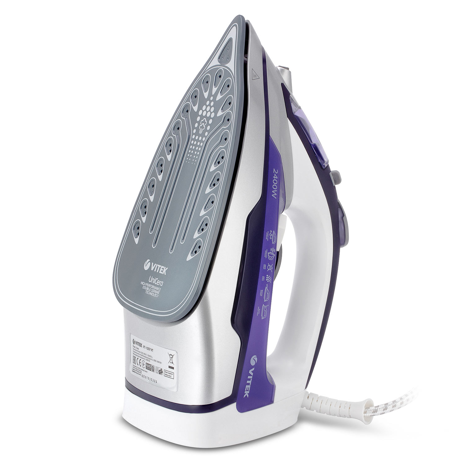 Утюг эл. VITEK VT-1257, 2400Вт.,300мл., UniCera, функции: разбрызгивание, антикапля, самоочистка, вертикальное отпаривание, белый/фиолетовый