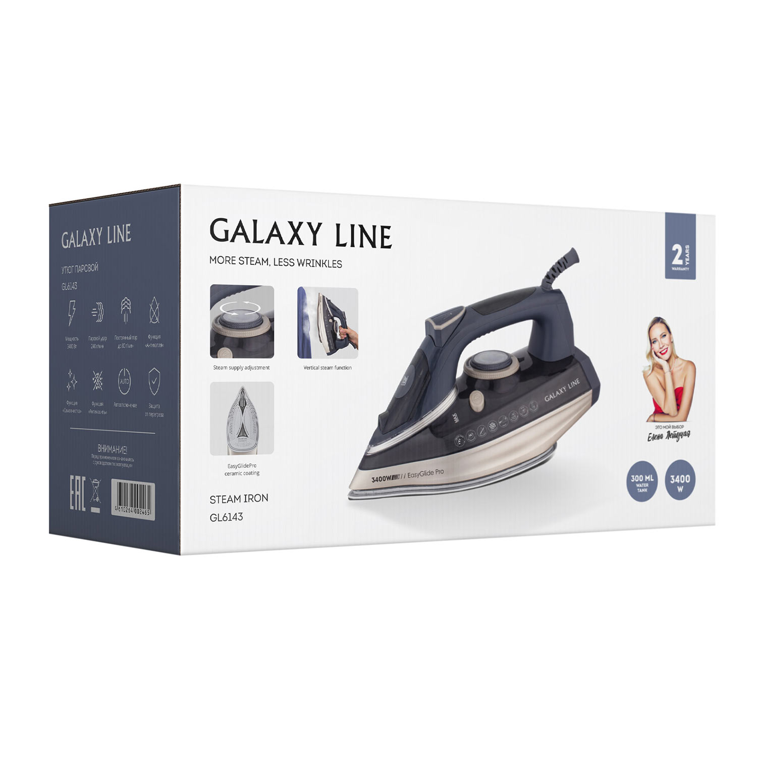 Утюг Galaxy LINE GL6143 паровой, 3400Вт, синий