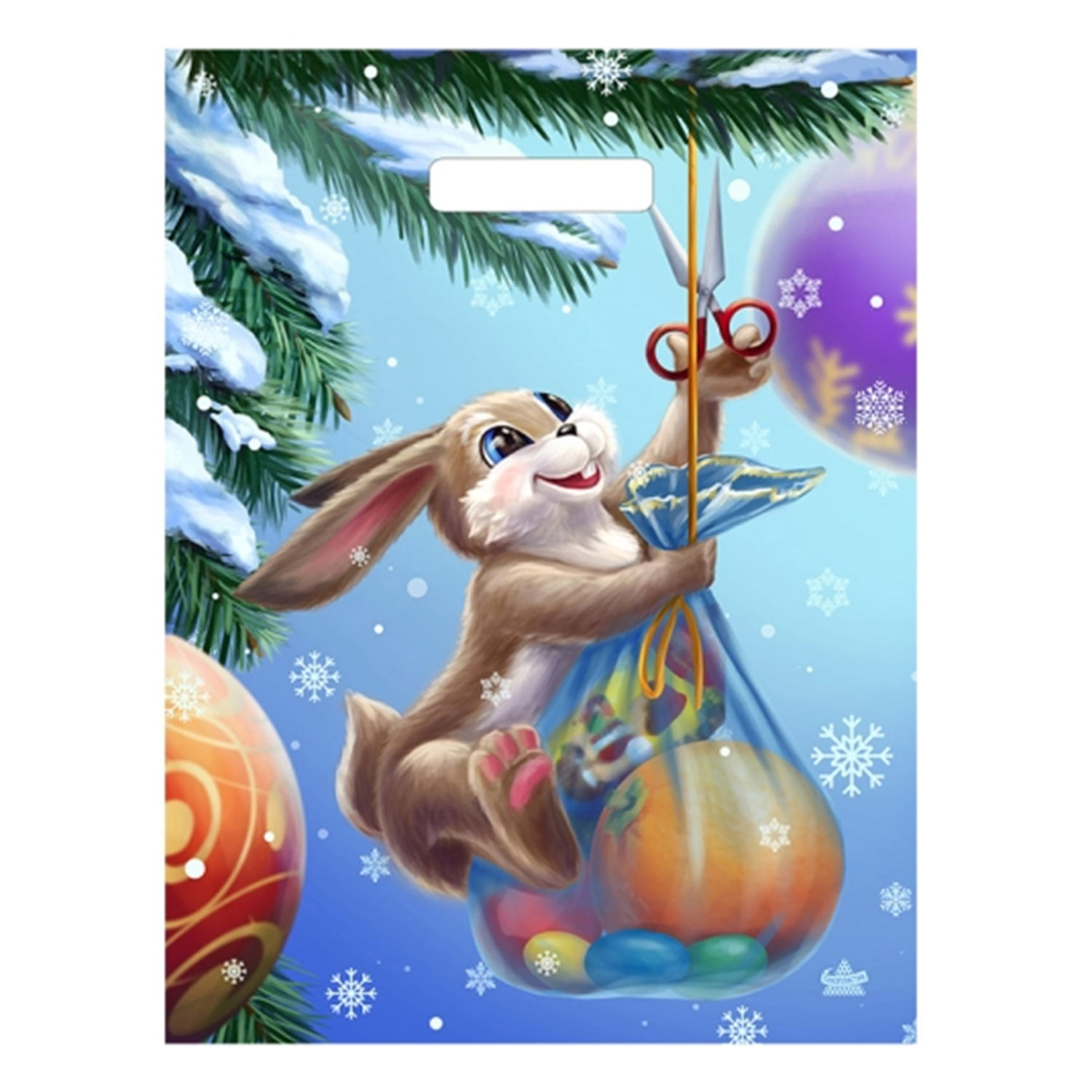 Пакет НГ ГЛЯНЕЦ проруб. 31*40+3 60мкм Зайка с подарком ПВД ТИКО