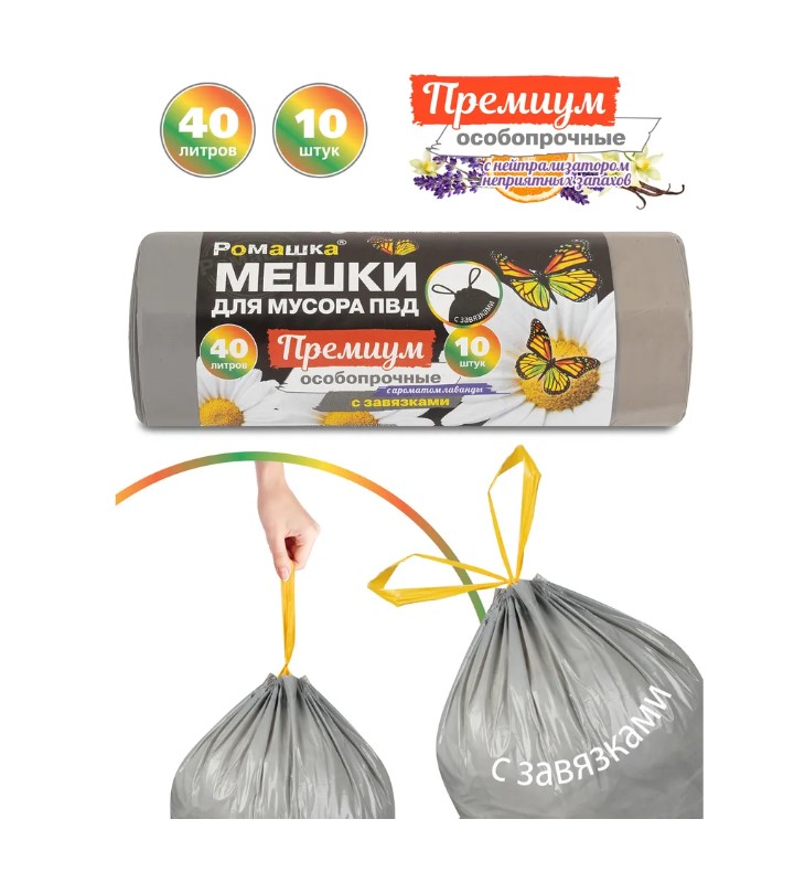 Купить Мешок д/мус.40л*10шт Ромашка Премиум ПВД с завяз.серые 21913.1.1, а также приобрести другие хозяйственные товары для дома или дачи в нашем интернет-магазине vdd36.ru по низким ценам и вы сможете с удобной доставкой или бесплатным самовывозом из любого розничного магазина «Всё для дома» в Воронеже, Новой Усмани, Семилуках