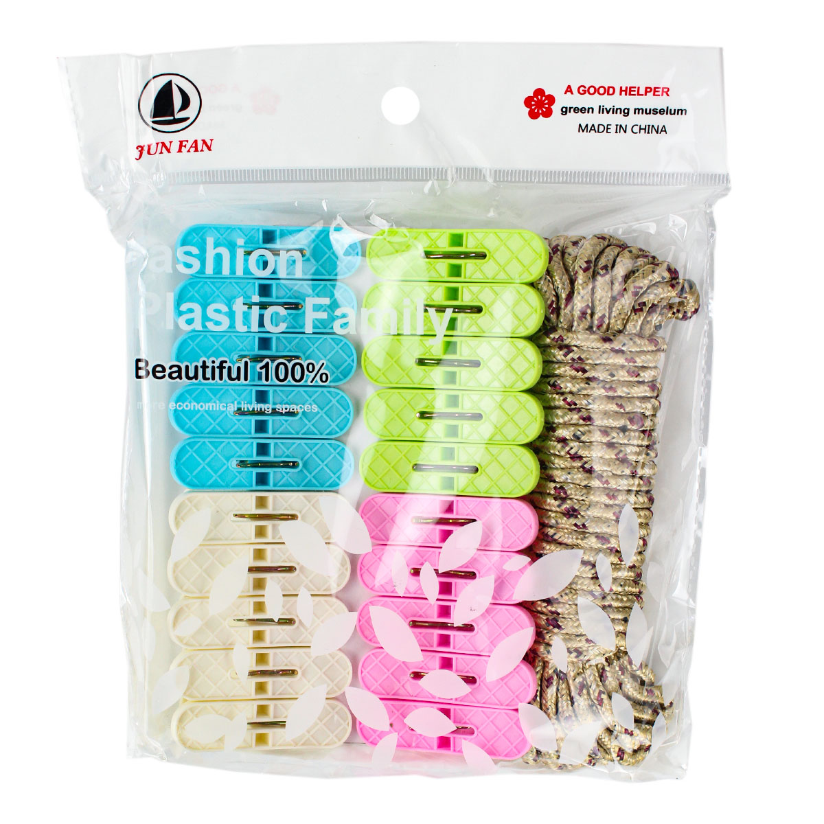 Набор прищепок бельевых HTZPV9, 20шт.+веревка 20м пластик ABS