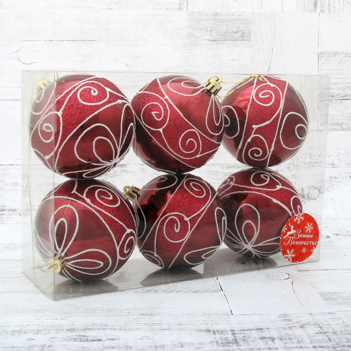 Наб.елочных шаров 6шт,8см,пластик красный HTVZ028