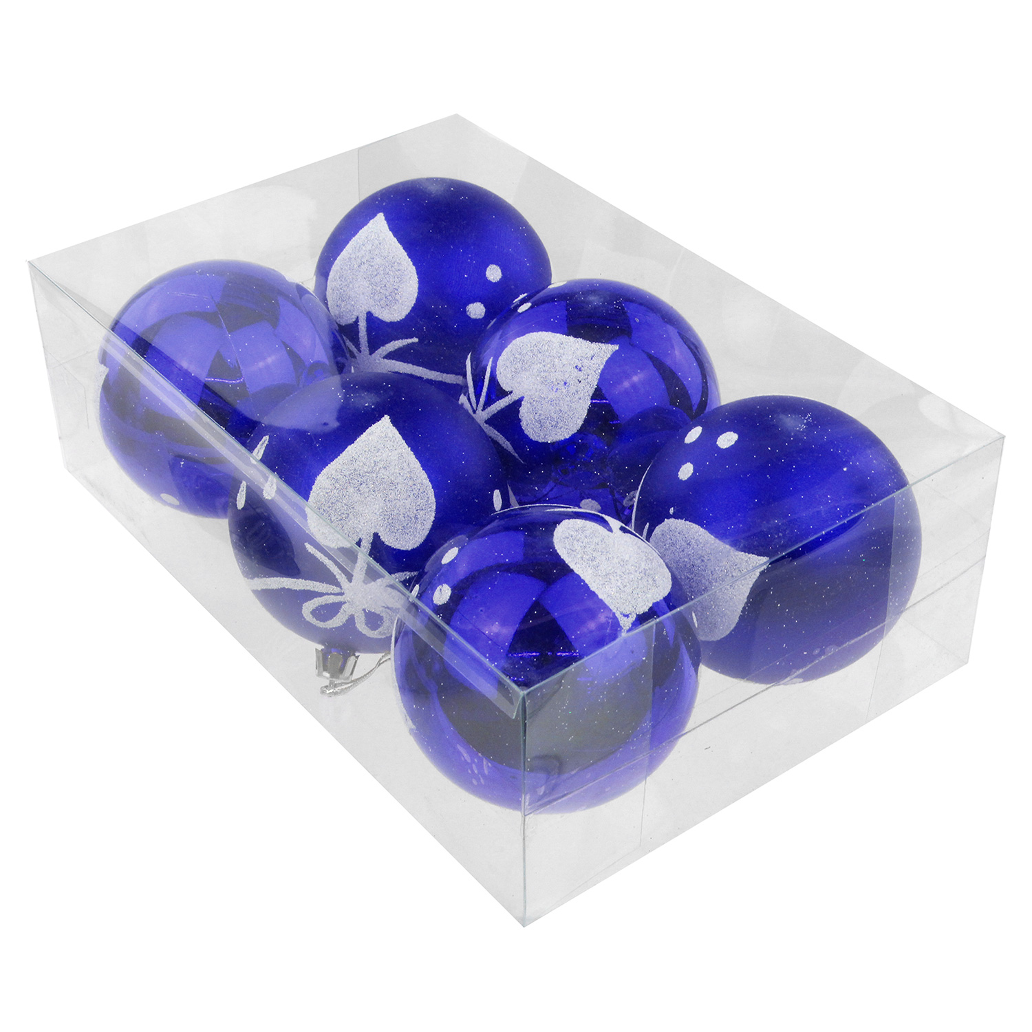 Наб.елочных шаров "Сердце" 6шт,8см,пластик синий HTVZ011