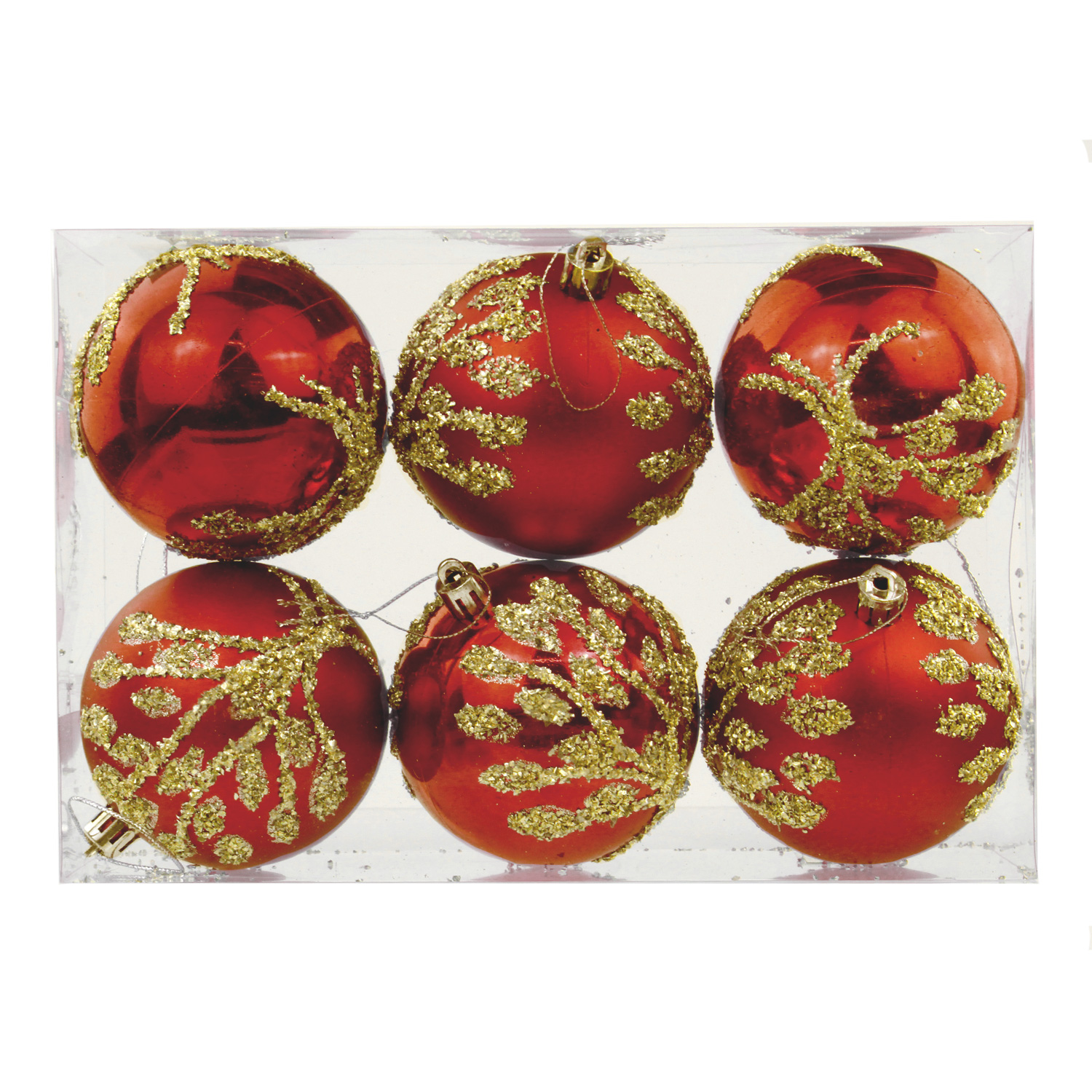 -Наб.елочных шаров 6шт,8см,пластик красный HTVZ028