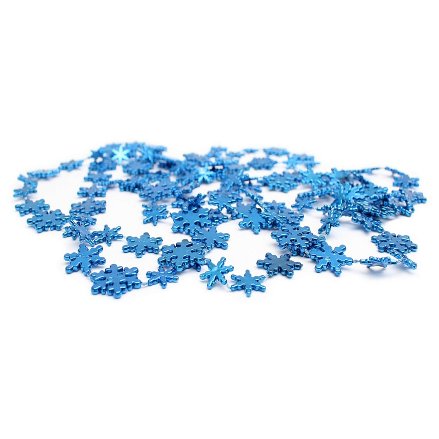 -Бусы на елку НУ-6753 Снежинки, синие