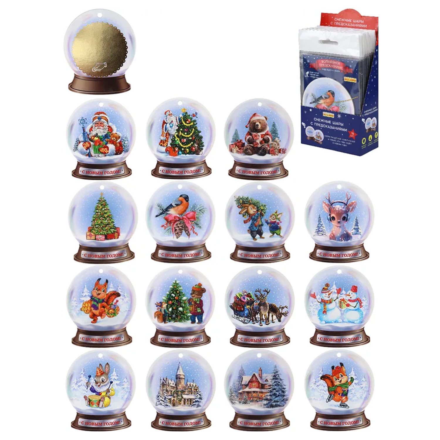 Подвеска с предсказ. под скретч слоем НУ-5971 (100*85мм) Снежный шар, 15шт в ш/б