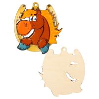-Новогодняя елочная подвеска из дерева НУ-2803 двухслойная, Рыжая лошадка 9см