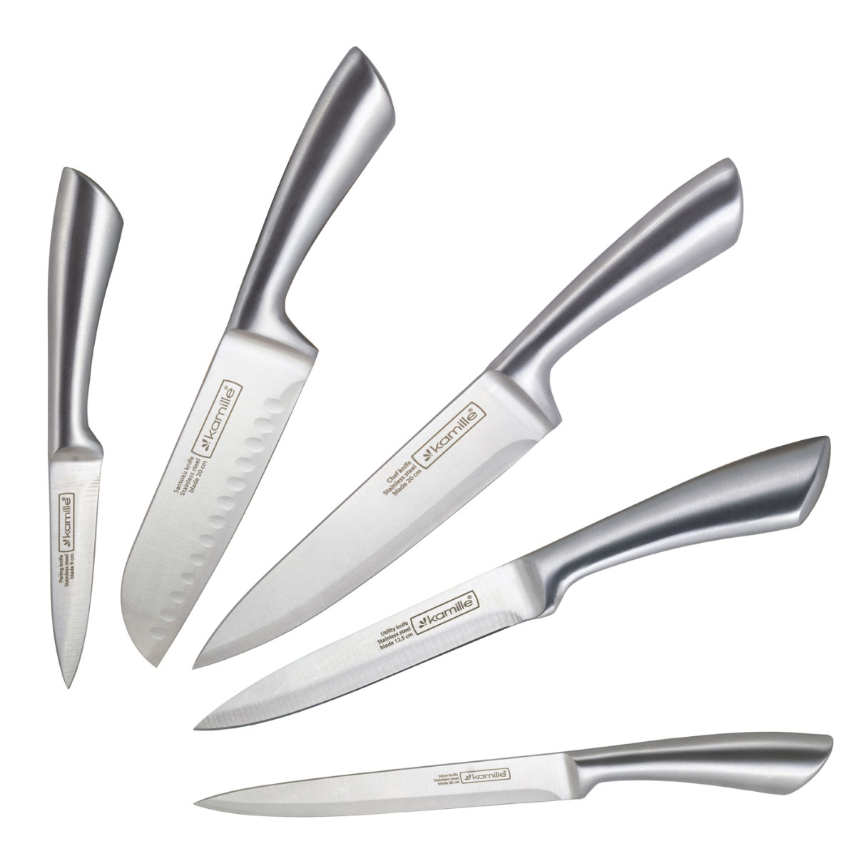 Набор ножей нерж. Kamille 5130,   6пр., с полыми ручками и дер.подставкой