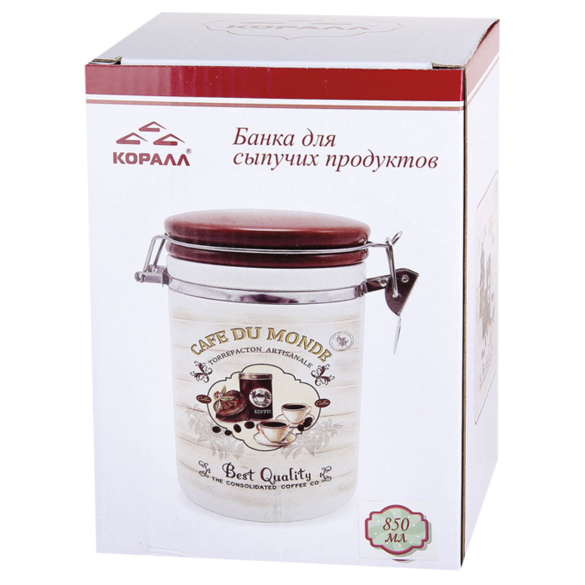 Банка д/сыпучих продуктов 850мл HC5D38-A17 Кофе п/уп с клипсой