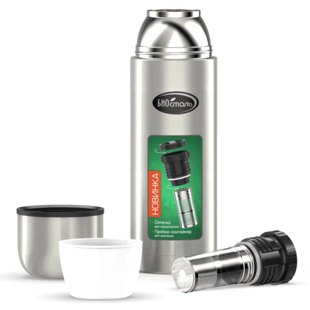 -Термос BIOSTAL-Охота NBP-1000Z 1л с узкой горловиной, ПРОБКА С СИТЕЧКОМ 12