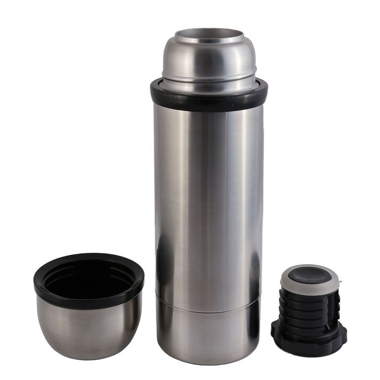 Узкое горло облегчает наливание и предотвращает проливы. Крышка-чашка служит одновременно удобным стаканчиком для питья. Корпус выполнен из высококачественной нержавеющей стали AISI 304, обеспечивающей прочность и устойчивость к коррозии.