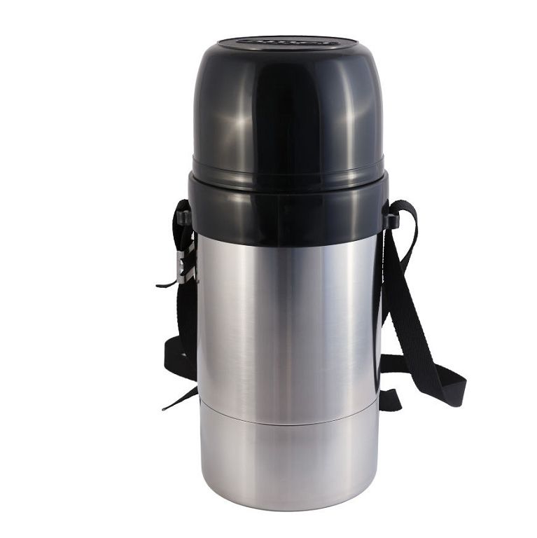 Термос нерж. Амет "Дорожный" 1С668, вм. 1л., пробка двойная, винтовая, узкая горловина, на ремне