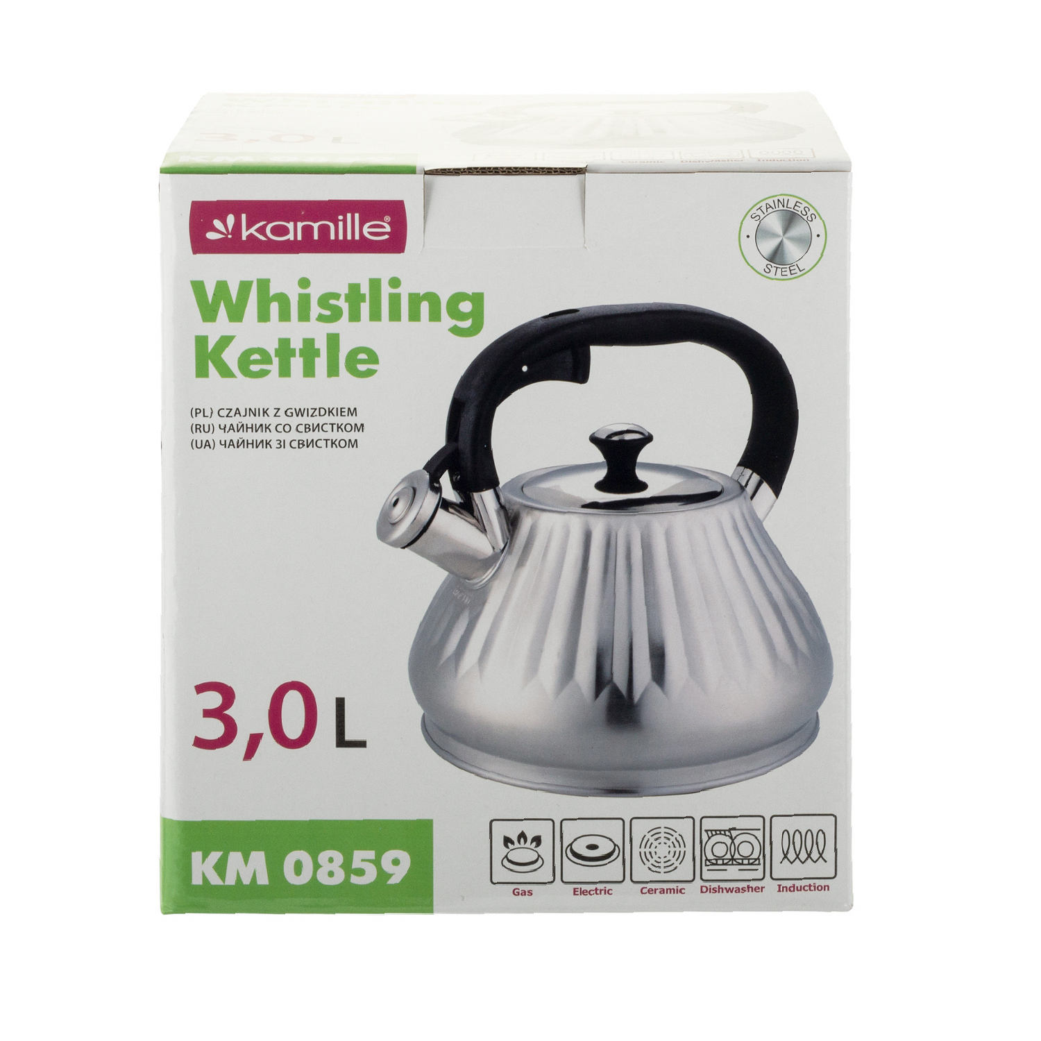 Чайник 3,0л нерж.ст. с/с, ручка soft-touch 0859