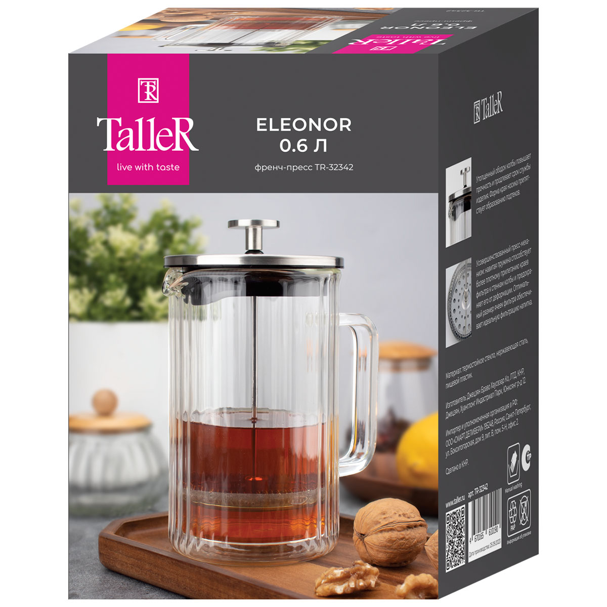 Закажите френч-пресс TalleR TR-32342 "Элеонор» прямо сейчас и наслаждайтесь ароматным напитком в стильной посуде! Доставка по всей России.