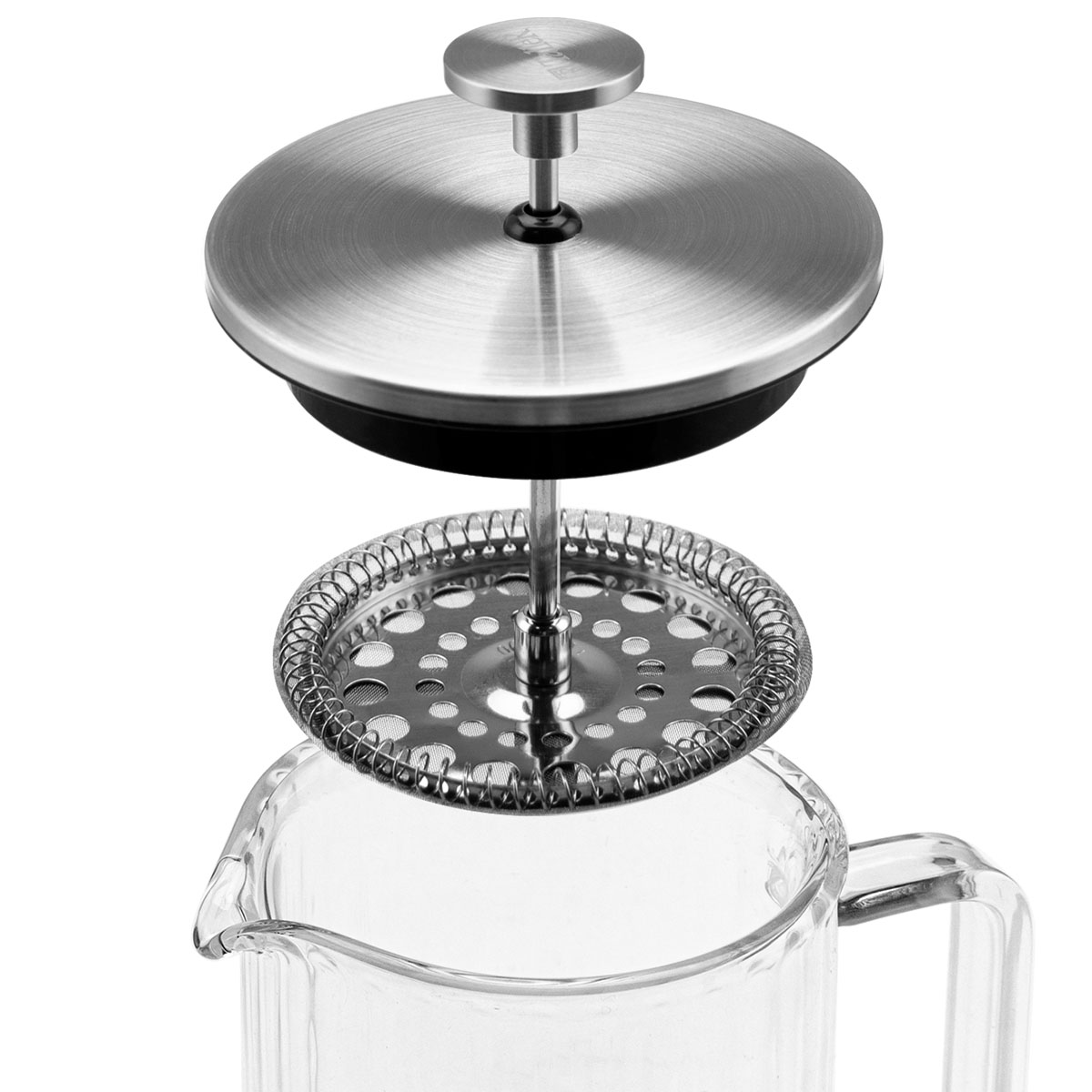 Двойные стенки корпуса придают френч-прессу современный и оригинальный вид, а разборная конструкция пресс-фильтра значительно облегчает уход за изделием. Этот френч-пресс прекрасно подойдет для заваривания кофе, чая, а также тонизирующих и расслабляющих напитков.