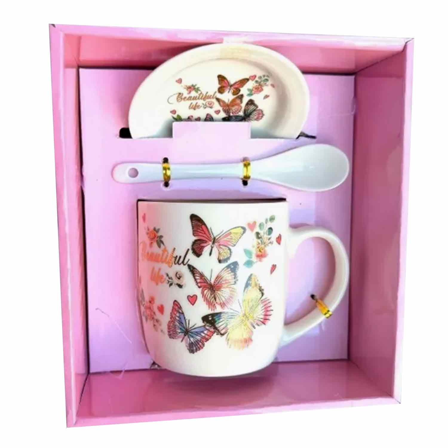 -Кружка подар 300мл с ложкой керамика HTHK-2087,с крышкой