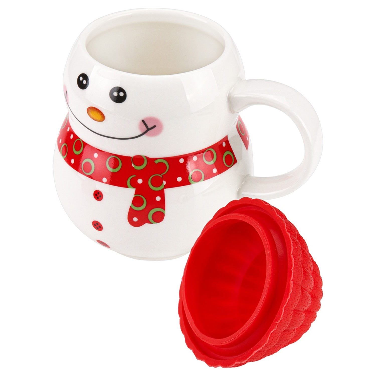 Кружка Новогодняя 300мл КС-2674 с ложечкой и крышкой "Снеговик" красная