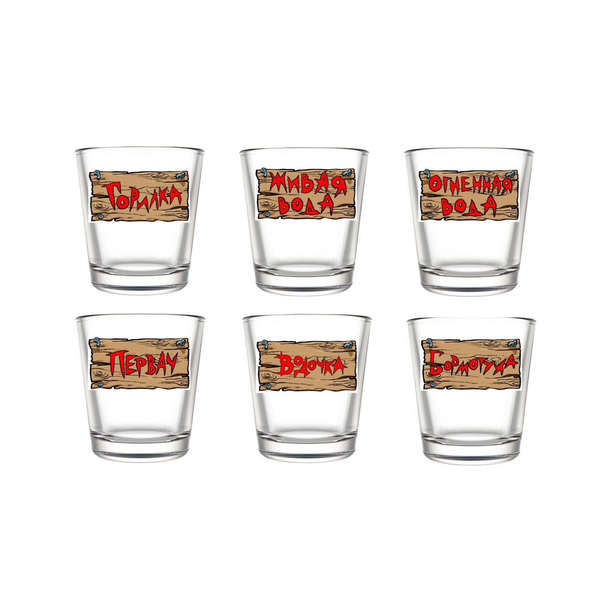Набор дорожный стекл. ДЕКОСТЕК "Шильдики" 1205-Д, 5пр (стопка-3шт, кружка д/пива-1шт, пепельница-1шт) п/у