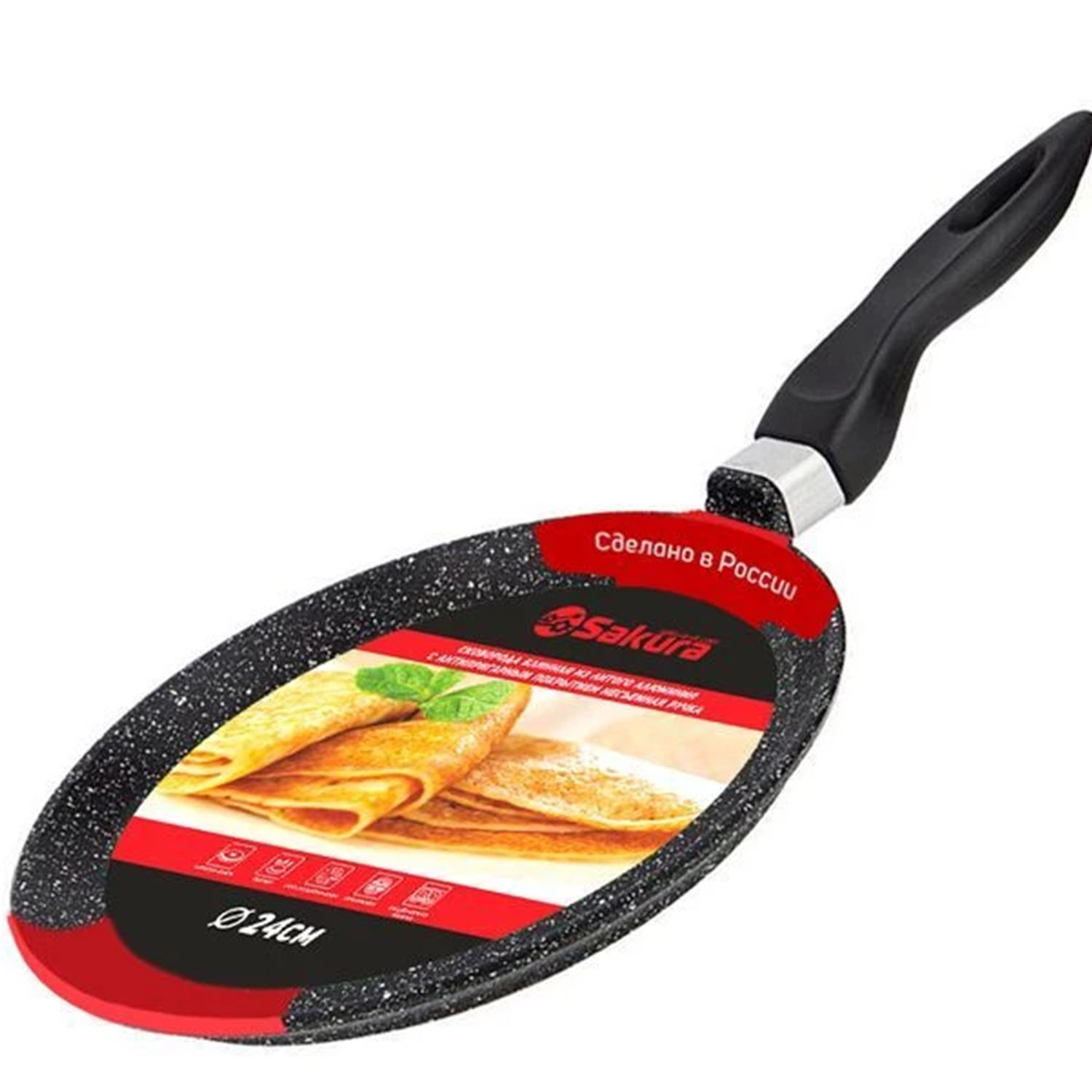 Блинница 24см SA-FB01-24 Мрамор литая черная
