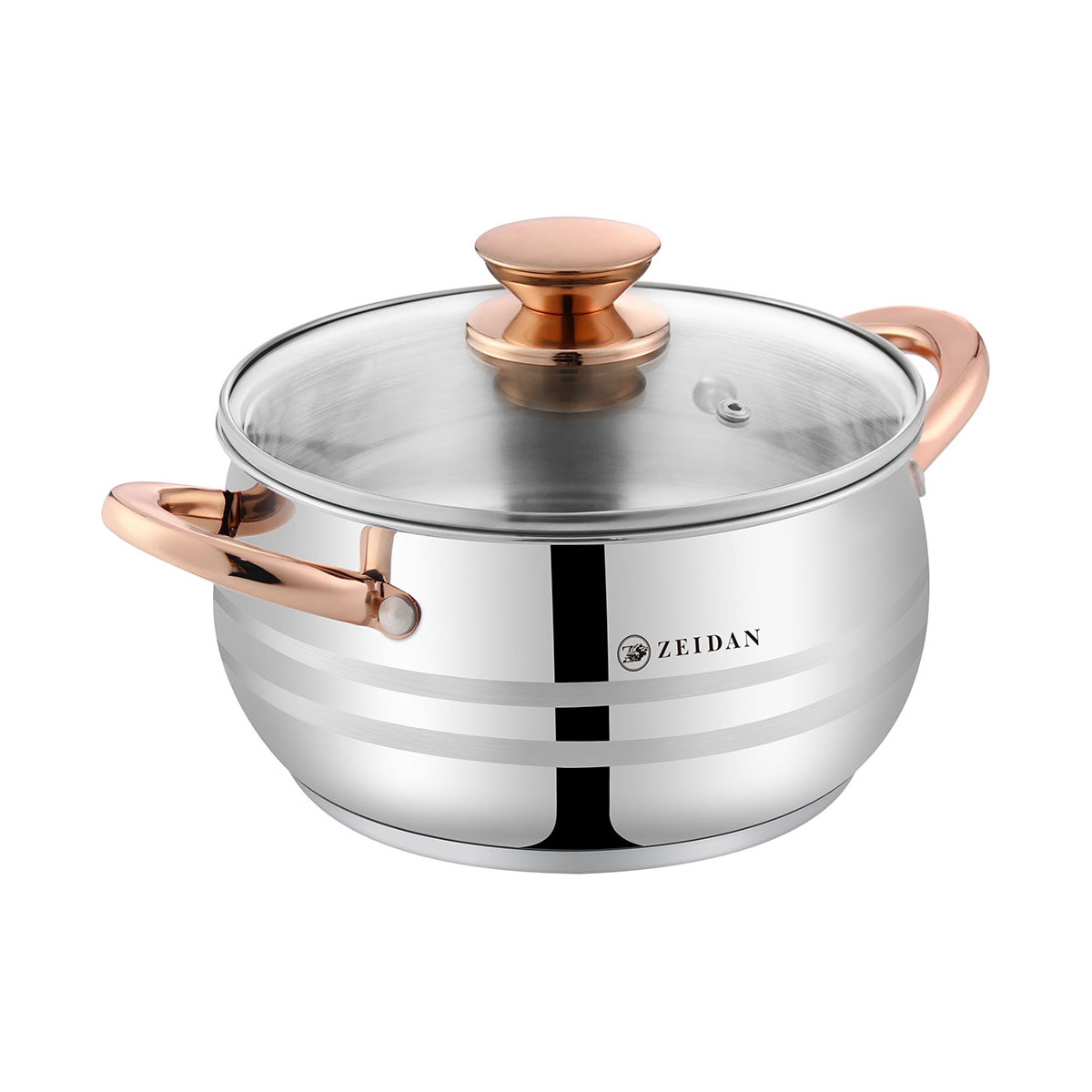 Кастрюля нерж. ZEIDAN Z-501071, 6,1л, 24см, стекл.кр., индукц. дно, ручки под золото, п/у