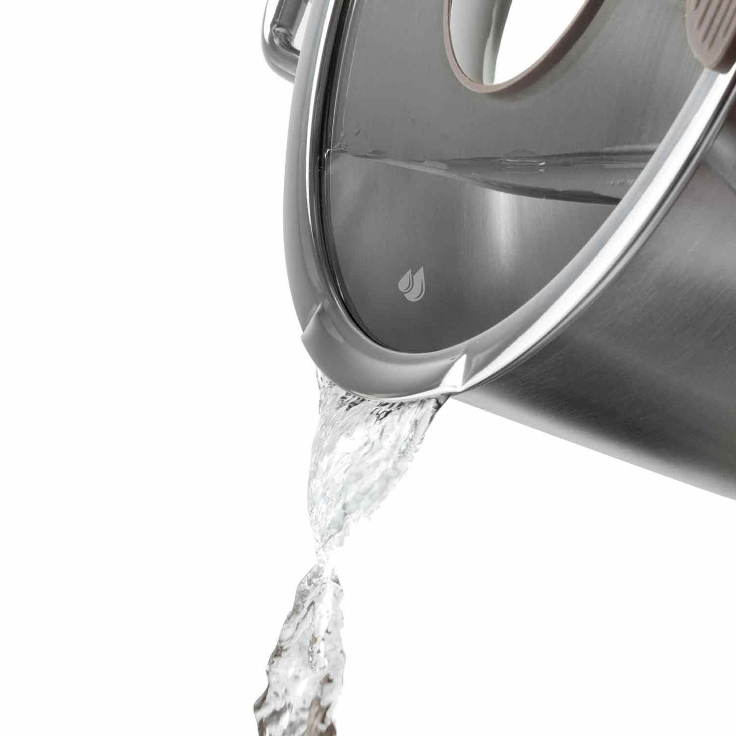 Капсулированное дно толщиной 2,9 мм обеспечивает равномерное распределение тепла и предотвращает пригорание. Внутри нанесены отметки объема для удобства приготовления. Кастрюля подходит для всех типов плит, включая индукционные.