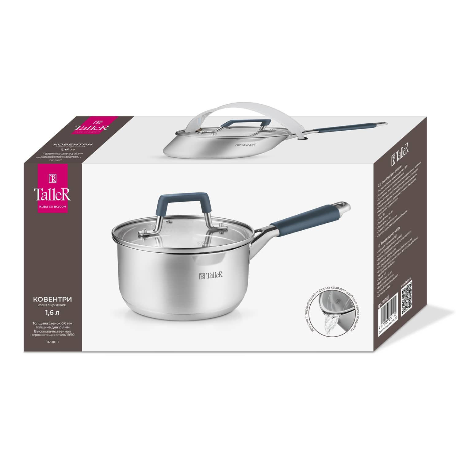 Посуду для приготовления пищи, столовую и барную посуду можно выгодно и удобно купить в Воронеже в магазинах «Всё для дома». Один из лучших представителей категории - Ковш TalleR TR-11011 1,6л, отличающийся высоким качеством и доступной ценой. Ознакомиться с ассортиментом посуды можно на сайте интернет-магазина vdd36.ru