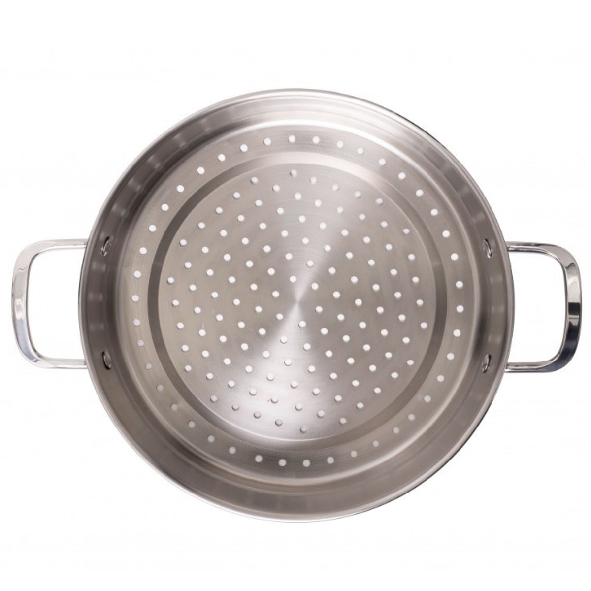 Жаропрочная стеклянная крышка с металлическим ободом позволяет контролировать процесс приготовления. Крепкие прутковые ручки из нержавеющей стали закреплены клёпками — это гарантирует надёжность и удобство в использовании.