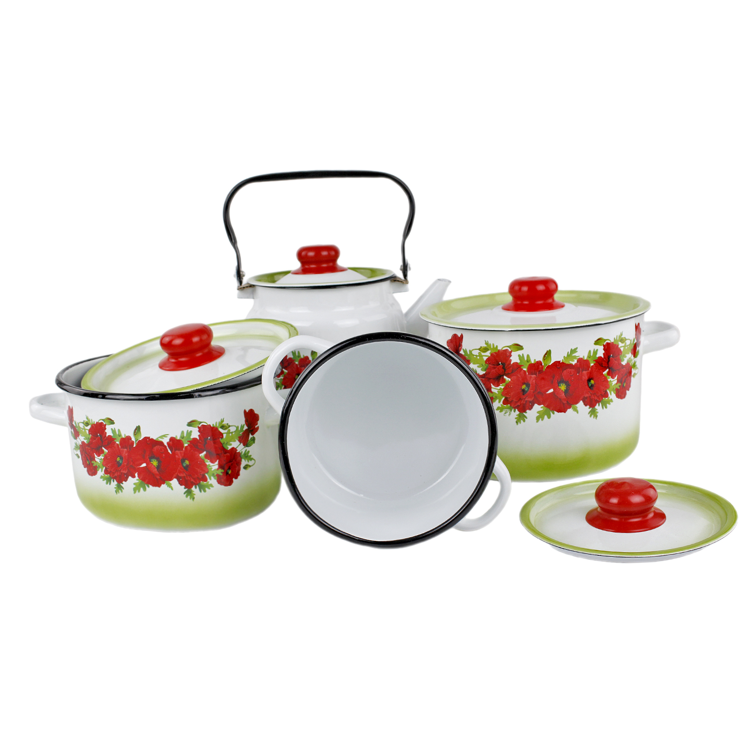 -Наб.посуды эмал 1с142/5 4пр Восточный мак, белосн.
