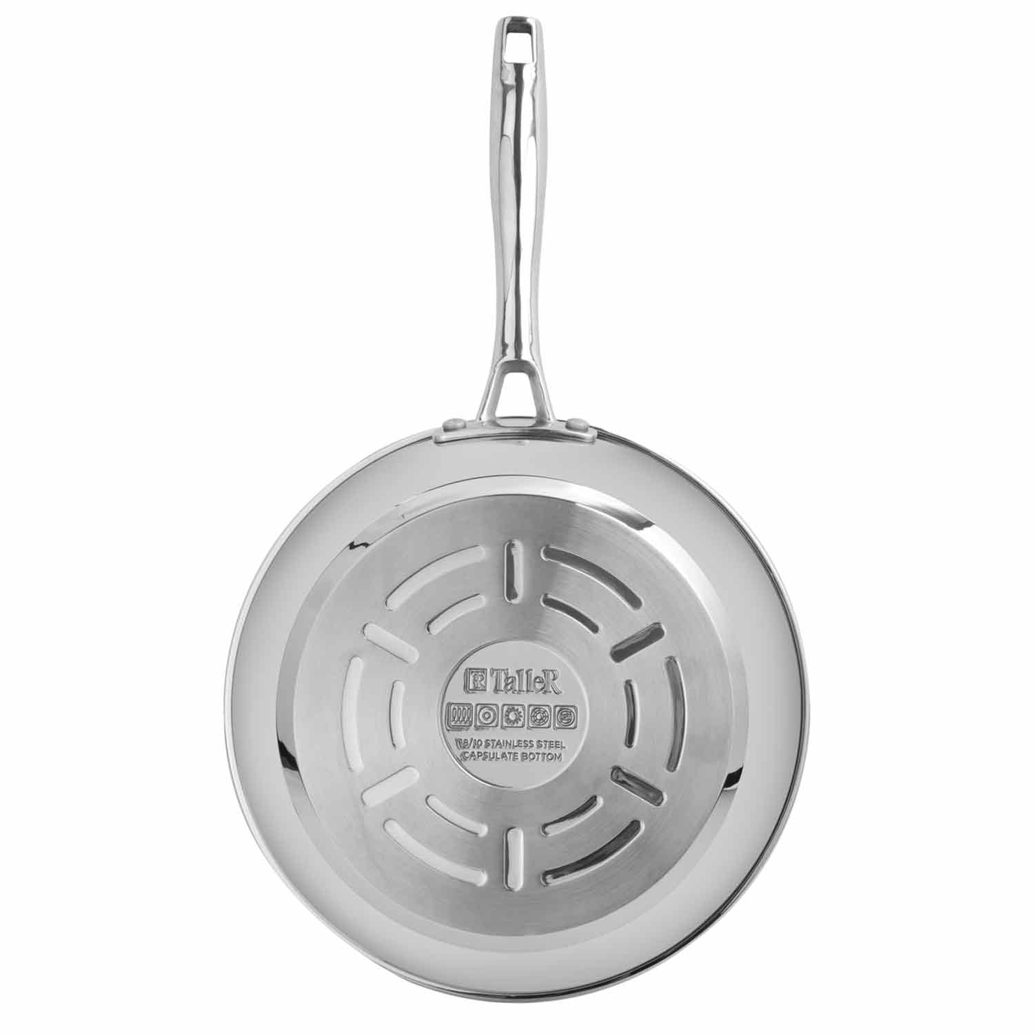 Сковорода TalleR TR-44903 Professional 26 см — премиальное изделие из нержавеющей стали 18/10 с профессиональным трёхслойным антипригарным покрытием ILAG DURIT Professional. Это покрытие отличается высокой износостойкостью (до 5000 циклов истирания), надежностью и безопасностью — не содержит PFOA и не выделяет вредных веществ при нагреве.Утолщённое капсулированное дно толщиной 5 мм обеспечивает быстрый и равномерный нагрев, позволяя готовить с минимальным количеством масла. Корпус с матовой полировкой выглядит стильно и современно. Эргономичная стальная ручка на клепках гарантирует удобный и надежный захват, не нагревается во время использования. Отверстие в ручке облегчает хранение.