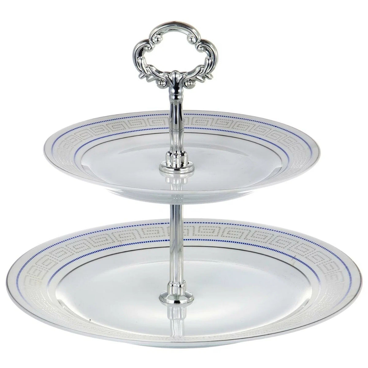 Фруктовница фарф. OLAFF 114-19025, 2 яруса, 180/230мм., с декором, бело-серый