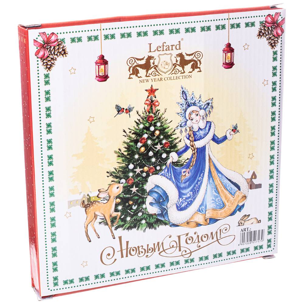 Тарелка закус. LEFARD 85-1717 Дед мороз и снегурочка 20,5см красная