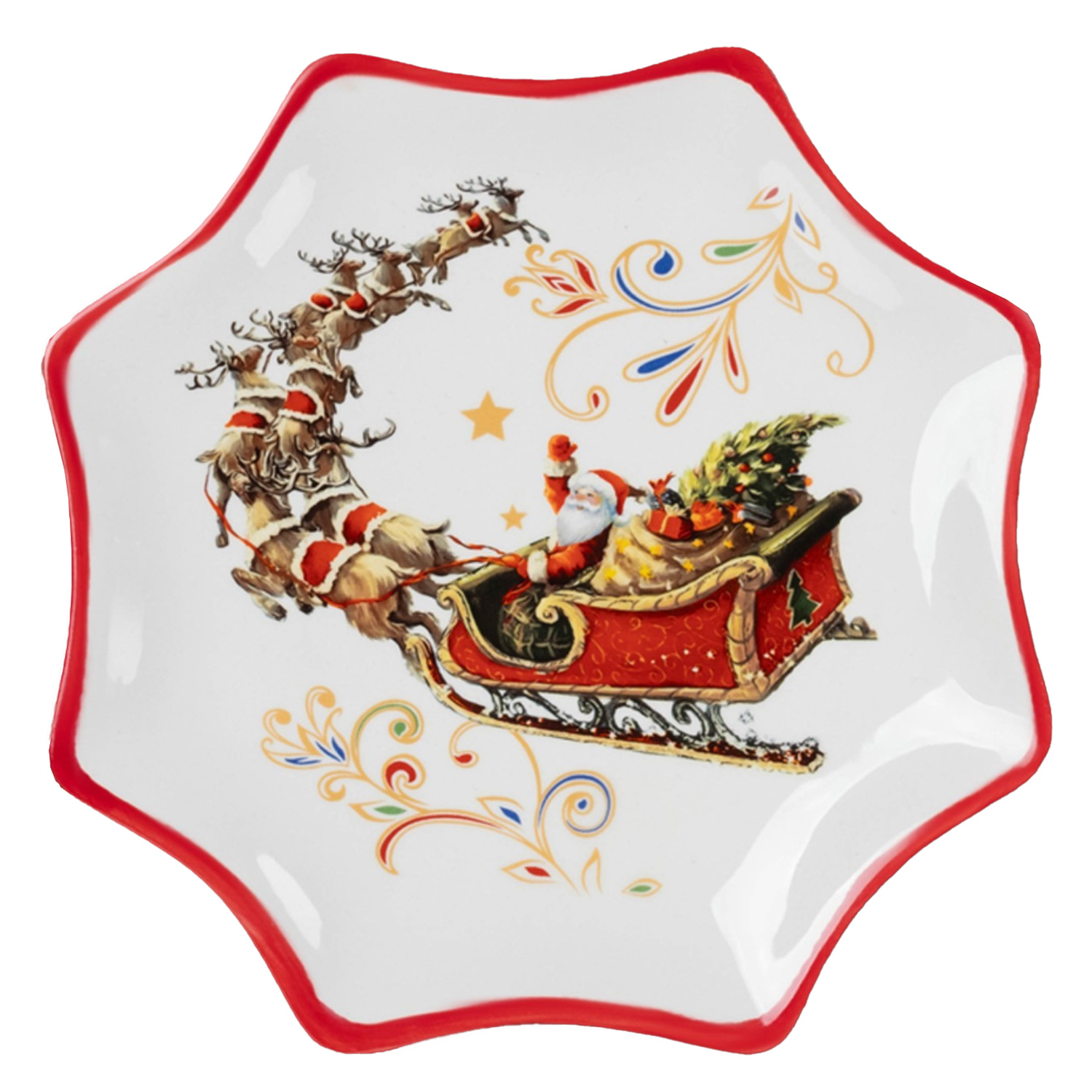 Тарелка 10338059 Доляна «Сани Деда Мороза» НГ 20*2.3см, керамика, белая