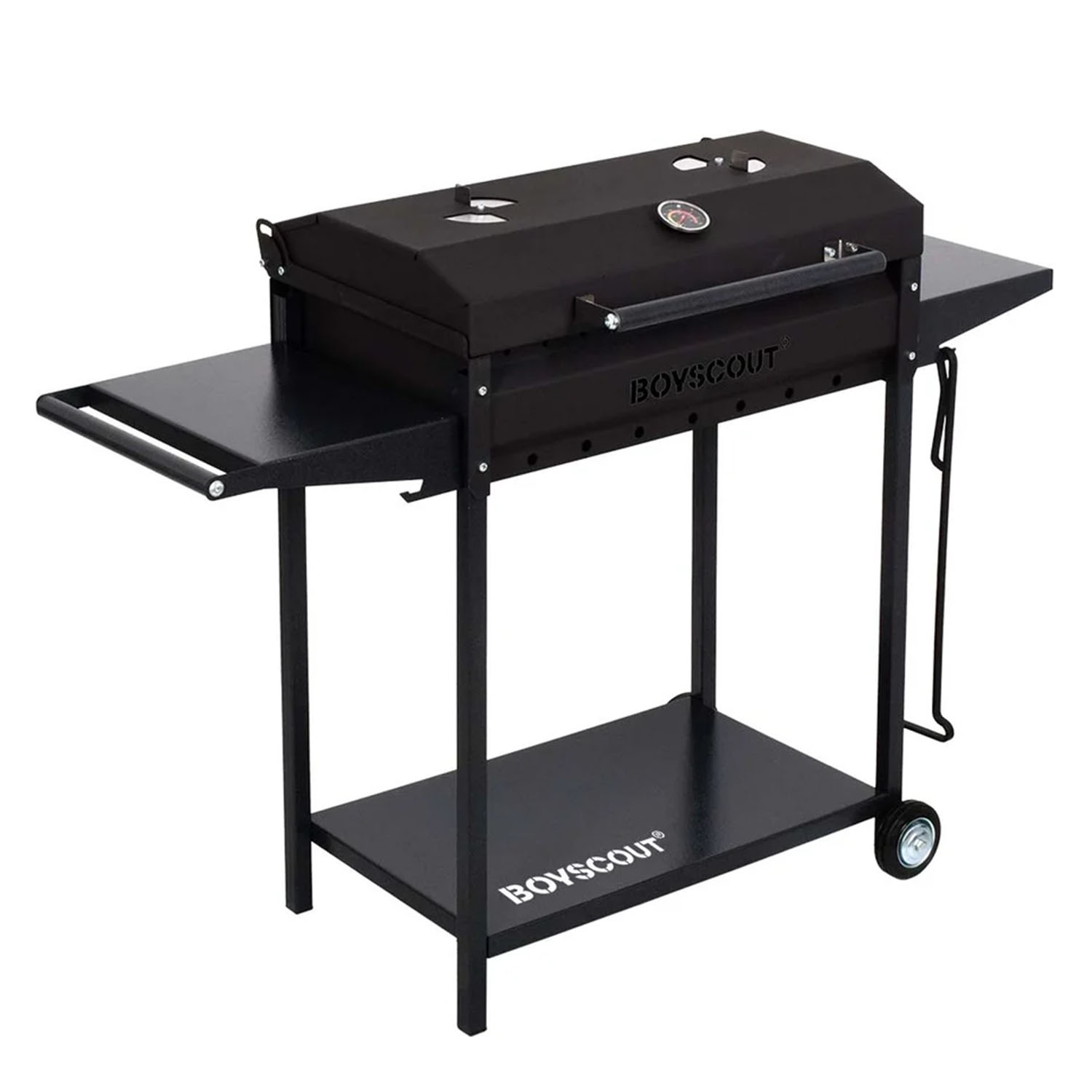 Мангал-гриль 61616 122*49*90см BOYSCOUT (2 столика,крышка, термометр, дровница и кочерга,на колесах)