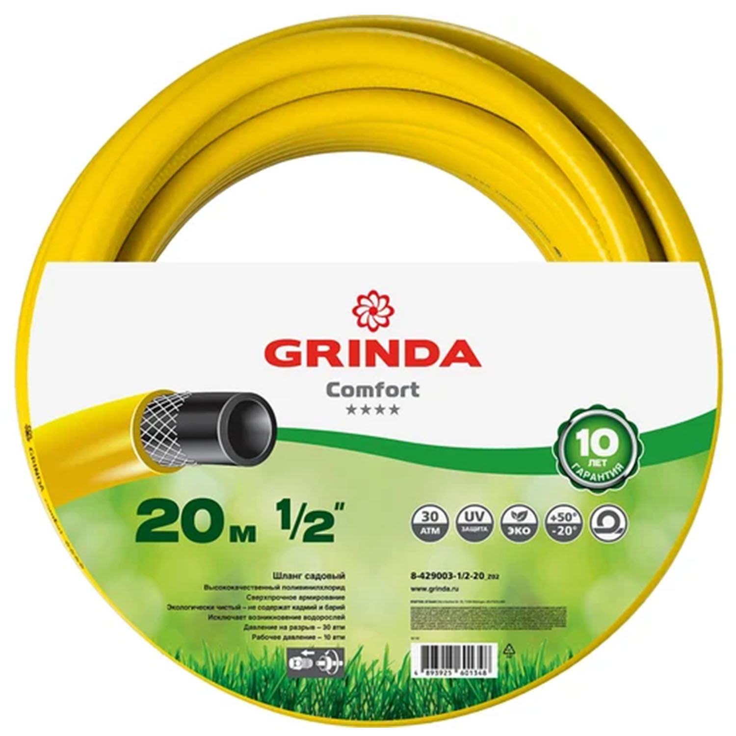 -Шланг полив. GRINDA Comfort, 8-429003-1/2-20 1/2", 20 м, 30 атм, трёхслойный, армированный