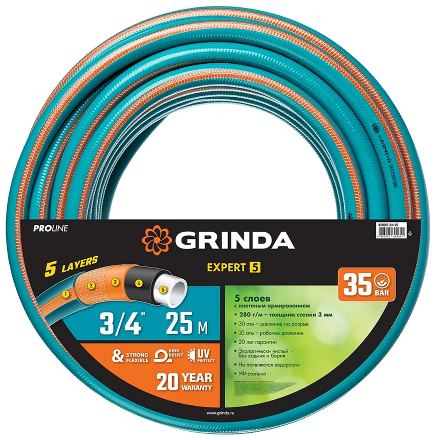 Шланг поливочный GRINDA EXPERT 429007-3/4-25 5, 3/4" 25м, 30 атм, пятисл, текстильн. армир, PROLine